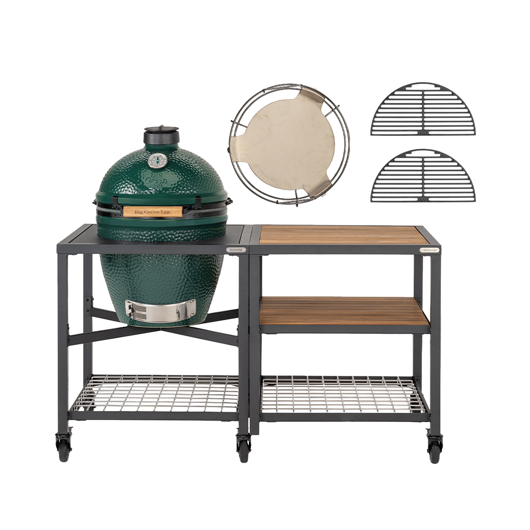 Het Large Outdoor Kitchen pakket biedt alles wat je nodig hebt om je Big Green Egg om te toveren tot een compleet buitenkeuken. Dit pakket is ideaal voor zowel fervente BBQ-liefhebbers als professionele chefs die hun kookruimte willen uitbreiden en verfraaien. Dit pakket bevat een Big Green Egg Large, EGG Frame én Expension Frame inclusief Acacia Wood Inserts, convEGGtor en zijn basket, twee gietijzeren roosters en caster kits. De perfecte setup voor buitenkoken.
