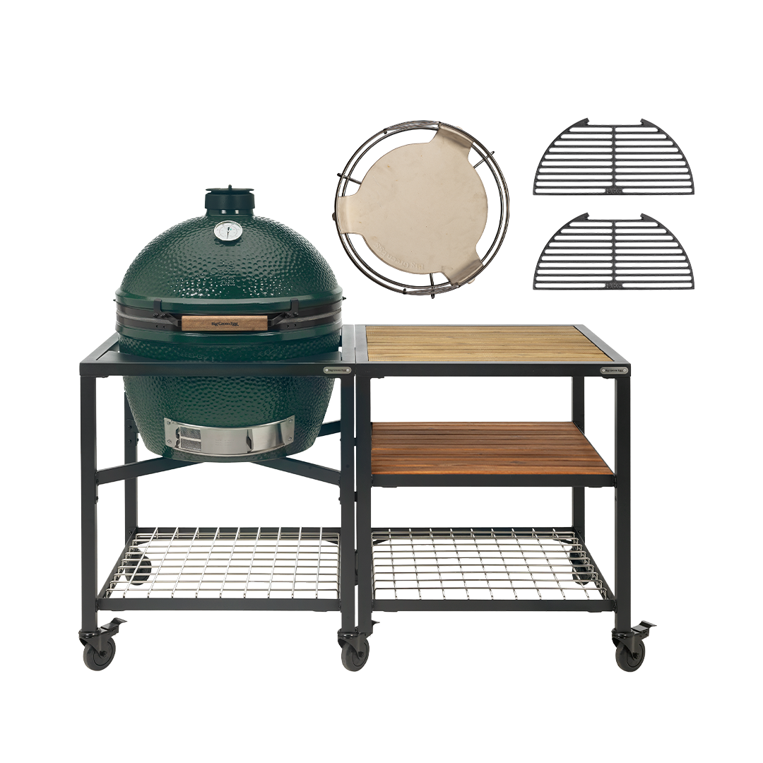 Het XLarge Outdoor Kitchen pakket biedt alles wat je nodig hebt om je Big Green Egg om te toveren tot een complete buitenkeuken. Dit pakket is ideaal voor zowel fervente BBQ-liefhebbers als professionele chefs die hun kookruimte willen uitbreiden en verfraaien. Dit pakket bevat een Big Green Egg Large, EGG Frame én Expension Frame inclusief Acacia Wood Inserts, convEGGtor en zijn basket, twee gietijzeren roosters en caster kits. De perfecte setup voor buitenkoken.