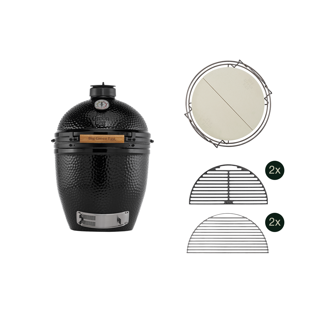 De iconische Big Green Egg heeft een gloednieuw broertje: The Onyx. Een stijlvolle, donkere glazuurlaag met een vleugje groen, net als de edelsteen. Dit startpakket is ideaal voor een luxe buitenkeuken en komt met alles wat je nodig hebt om direct aan de slag te gaan: twee Cast Iron Half Grids, twee Stainless Steel Half Grids en het nieuwe Dual Zone Deflectorkit voor geoptimaliseerde luchtstroom. Grillen maar!